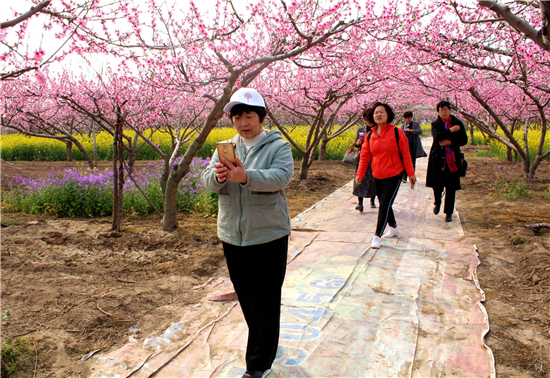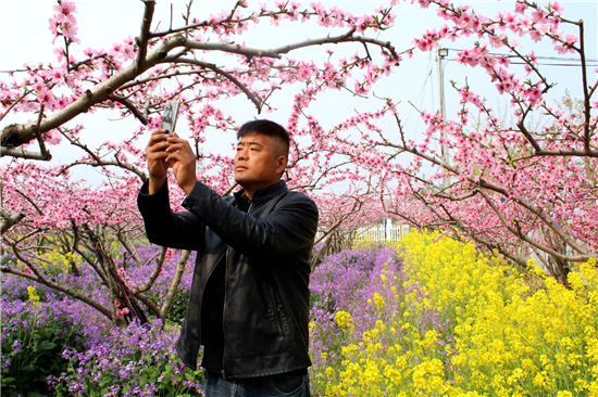 “老鐵們,今年桃花節(jié),因受疫情影響,是網(wǎng)上舉辦的,喜歡看黃橋桃花的網(wǎng)友,不要遺憾,我是您的忠實老鐵,每天會準(zhǔn)時給您分享桃花節(jié)的美景圖片及視頻,讓您足不出戶觀賞到萬畝桃園桃花盛開的美景?!?月22日,在西華縣潁河灣生態(tài)采摘園,網(wǎng)紅“西華桃子哥”和合盛正在拍攝桃園美景,一邊通過抖音、快手、微信群向網(wǎng)友拍攝上傳桃花盛開的視頻、圖片等美景,一邊樂此不疲地口中念念有詞道。