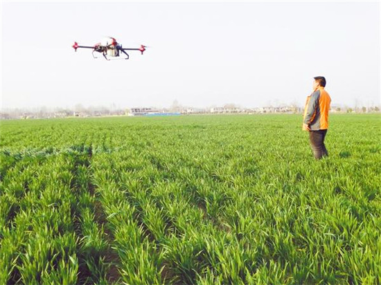 沈丘周營技術(shù)員操作無人機(jī)防病蟲害