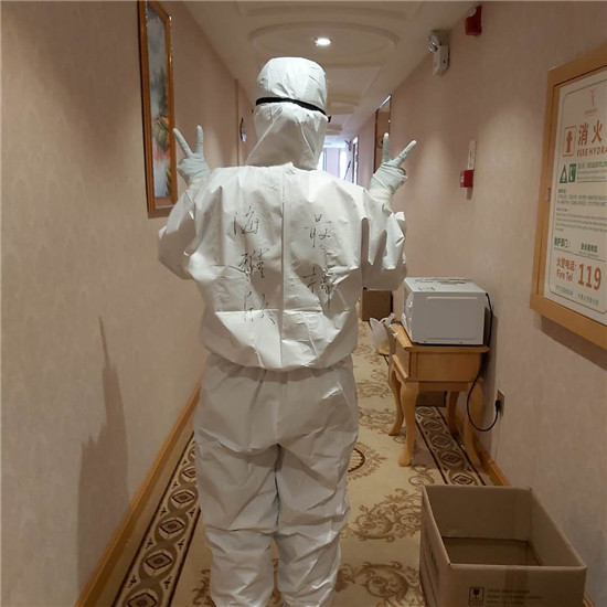 “我是護(hù)士,現(xiàn)在武漢正是最需要醫(yī)護(hù)人員,我要去武漢盡一份力量?!痹谡f(shuō)服了家人與醫(yī)院領(lǐng)導(dǎo)后,2月17日 海雅欣與北京、海南等地6名志愿者在湖北大悟縣服務(wù)區(qū)聚合,2月18日到武漢東湖高新區(qū) 濱湖社區(qū)衛(wèi)生服務(wù)中心佳園路如家隔離酒店進(jìn)行志愿者服務(wù)。先后參與了東湖高新區(qū)隔離點(diǎn)病人生命體征測(cè)量并照 顧病人日常生活需要;濱湖社區(qū)衛(wèi)生服務(wù)中心所屬病人咽拭子核酸檢測(cè)采樣;湖北省人民醫(yī)院東院區(qū)發(fā)熱門診患者 信息登記、分流疏導(dǎo)、聯(lián)系病人所屬社區(qū)安排隔離;東湖高新區(qū)發(fā)熱門診閉關(guān)等工作。