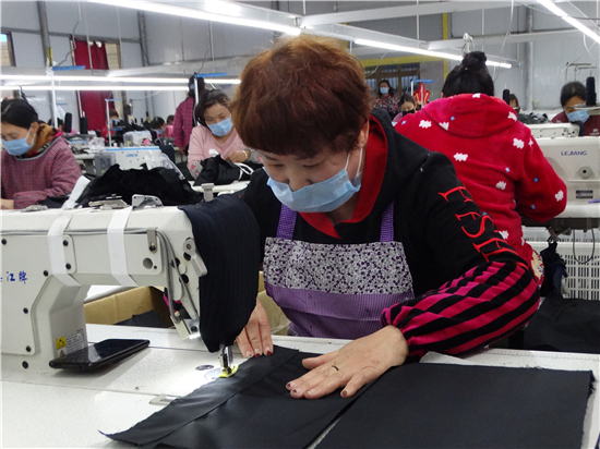 疫情不能放松,復(fù)工復(fù)產(chǎn)也要穩(wěn)妥推進(jìn)。連日來(lái),沈丘縣婦聯(lián)鼓勵(lì)引導(dǎo)和組織廣大婦女群眾科學(xué)安全有序助力企業(yè)、農(nóng)業(yè)合作社、扶貧車間等復(fù)工復(fù)產(chǎn),確保戰(zhàn)"疫"扶貧兩不誤,為統(tǒng)籌推進(jìn)防疫戰(zhàn)和脫貧攻堅(jiān)戰(zhàn)貢獻(xiàn)巾幗力量。圖為沈丘縣周營(yíng)鎮(zhèn)馬營(yíng)村慧恩服飾有限公司來(lái)料加工扶貧車間內(nèi),女工們正在生產(chǎn)線上加工訂單服裝。