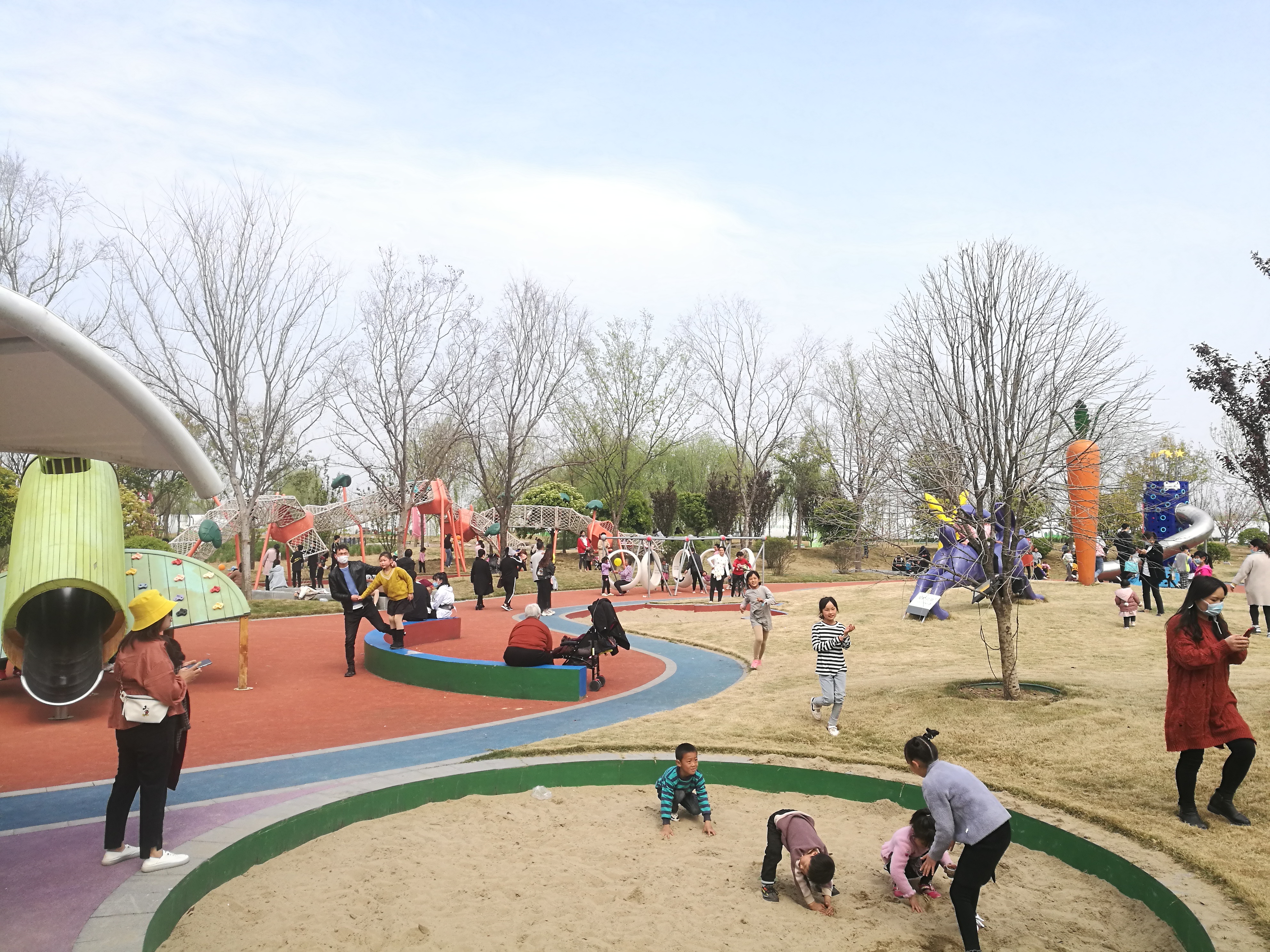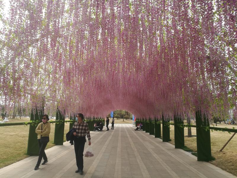受疫情影響,清明小長假,不少市民放棄了出行計劃。周口本地的游園、景點因此很是“火了”一把。近年來,周口城市建設(shè)日新月異,踏青賞花,在家門口就能滿足了。圖為周口某綠色基地節(jié)日場景。 記者 李偉 攝