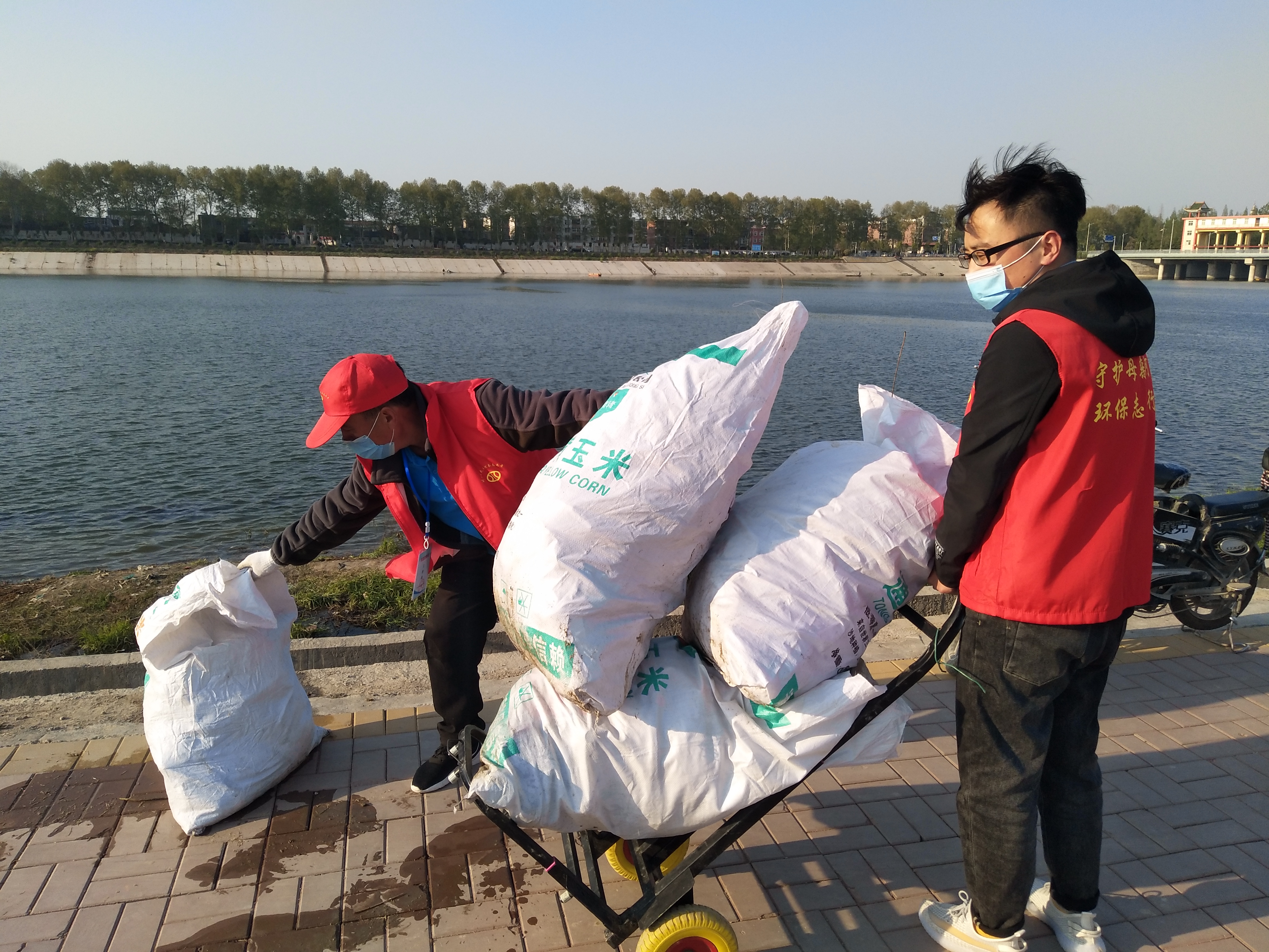 “哇!這回撈上來得多,快撿呀!”前方不遠處,一群志愿者歡呼著分揀剛撈上岸的一堆垃圾:塑料瓶,白色瓶蓋,玻璃瓶,包裝袋,化肥袋……志愿者們把他們逐一撿進身后的垃圾筐,拉上河堤,裝進白色大編織袋里。經(jīng)過兩個多小時的忙碌,十余大編織袋垃圾被裝車運往垃圾站,慈孝文化促進會第55次護河行動順利結(jié)束。
