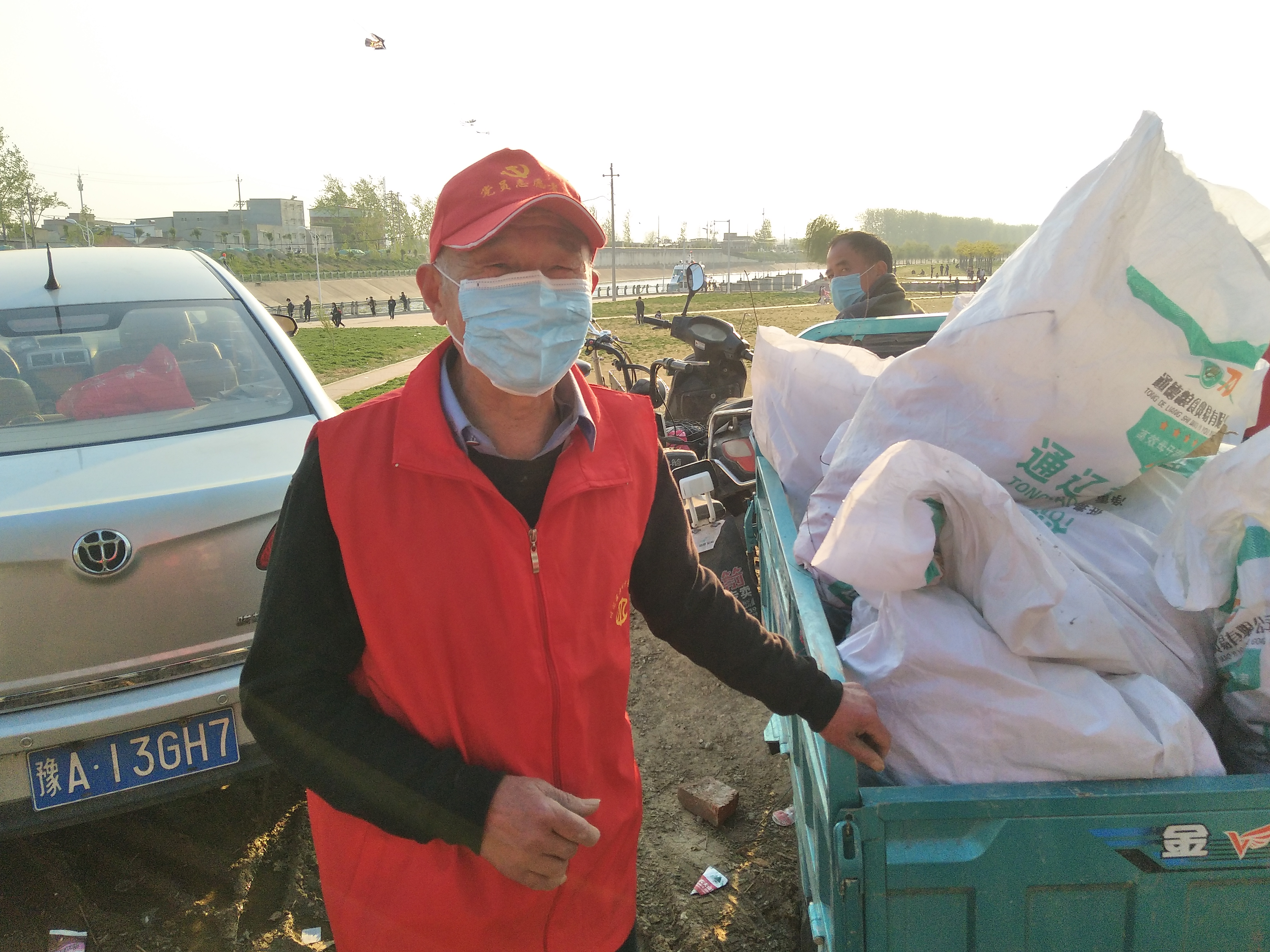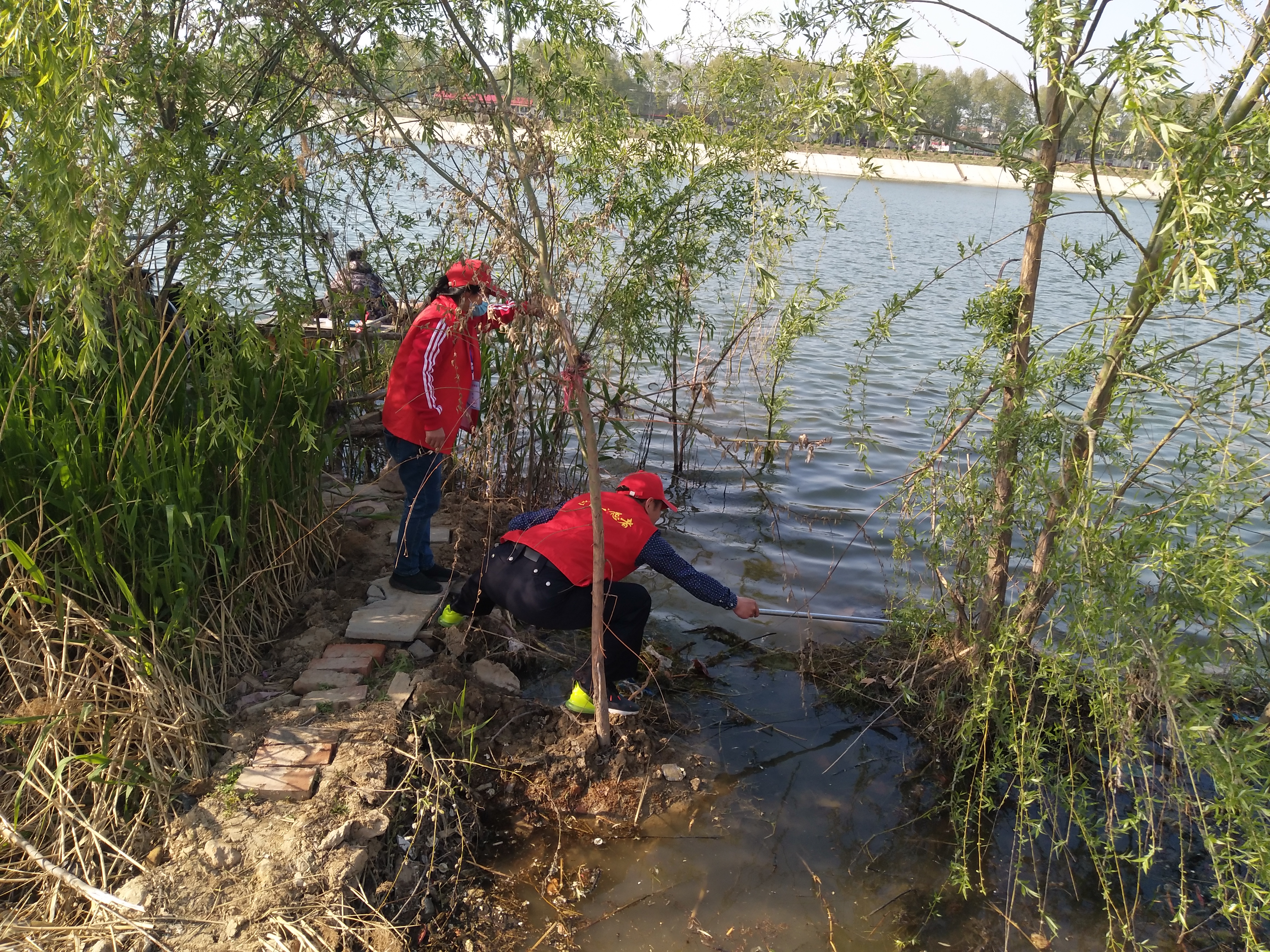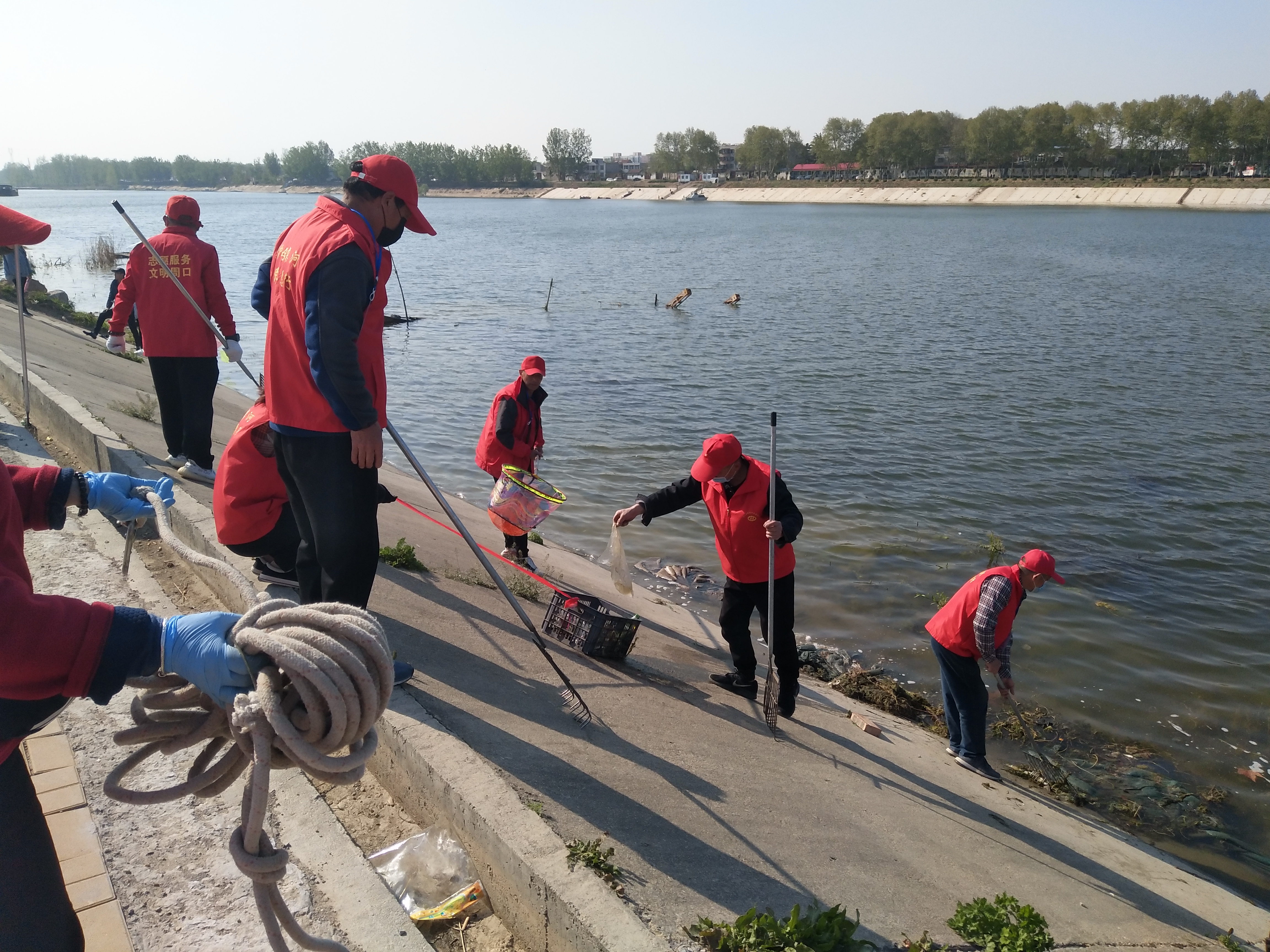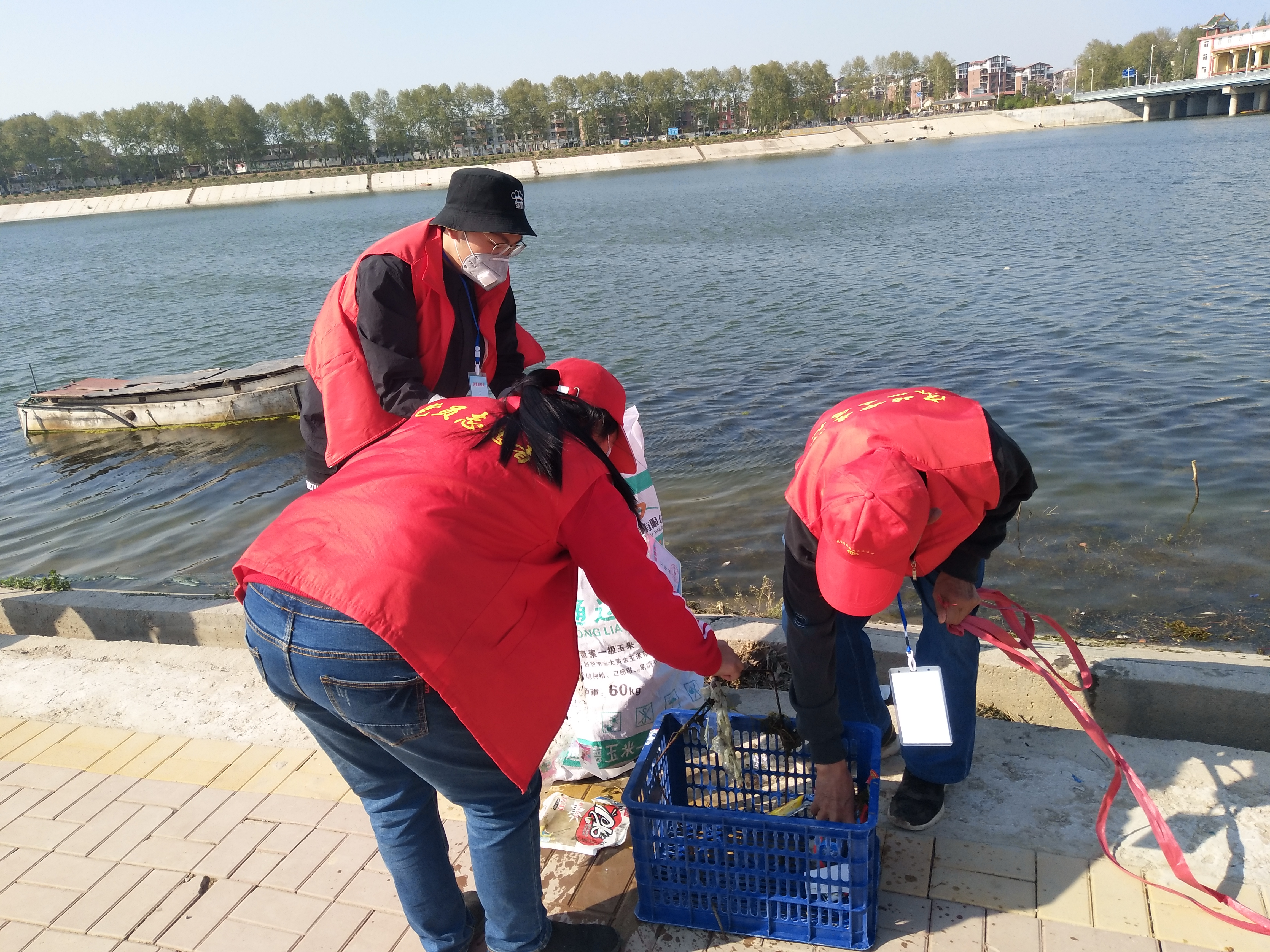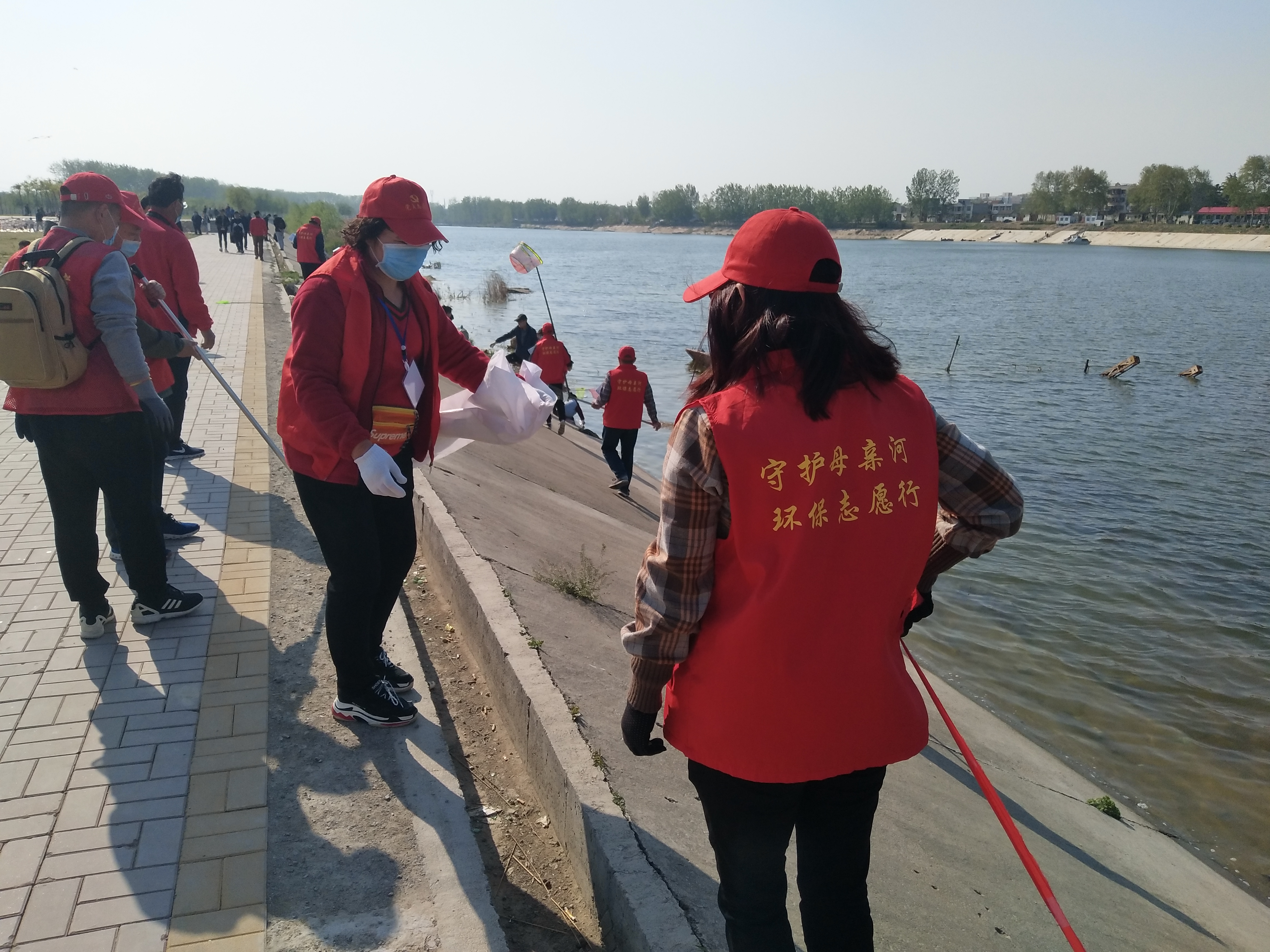 “你看那名大爺,我們這兒年紀最大的,68了,老黨員,我還沒分工呢就先下去撿垃圾了。”4月13日下午,大閘上游中島,周口慈孝文化促進會會長孫彩云剛見到記者就介紹了起來。