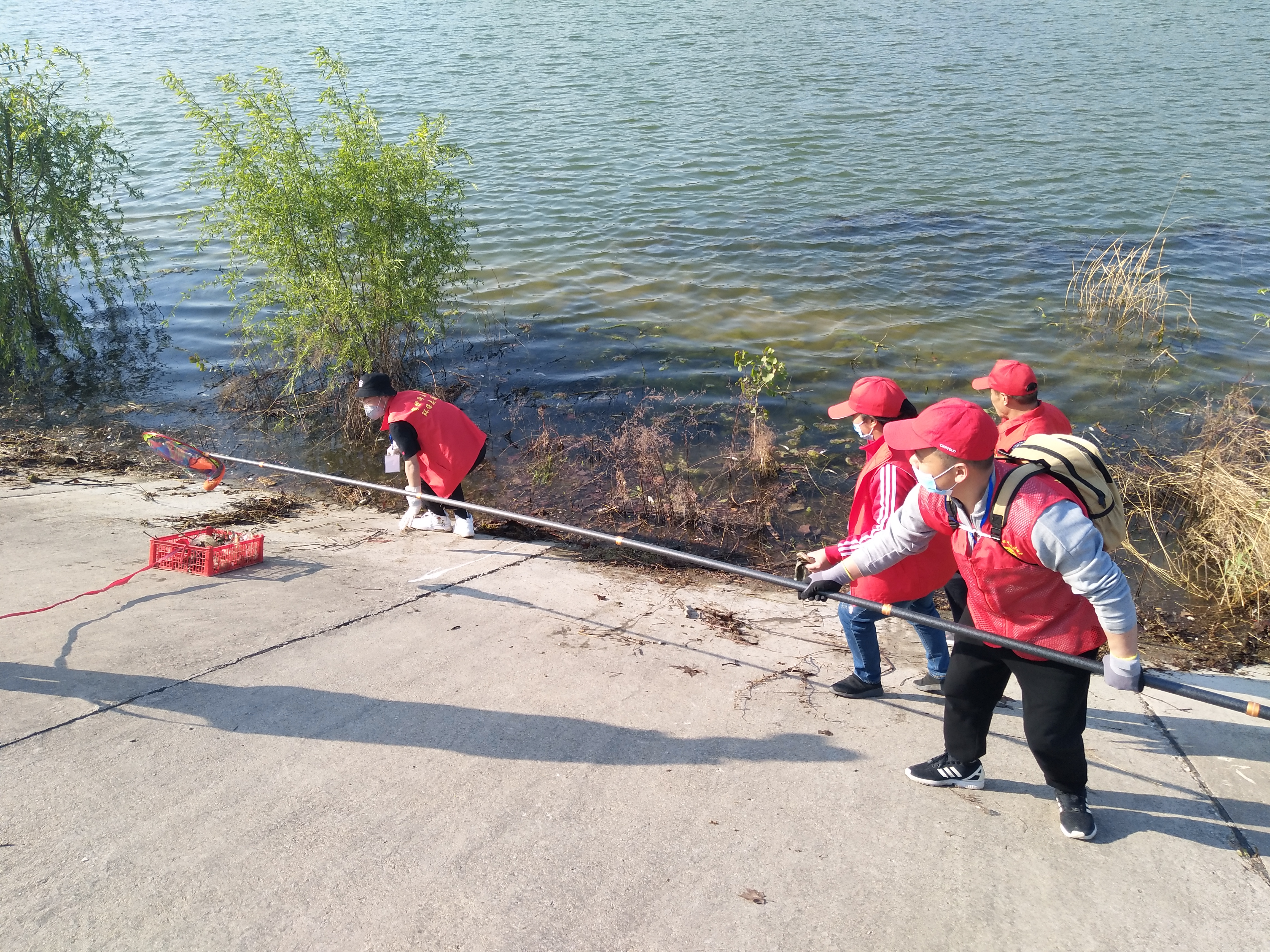 留下若干人員做問卷調(diào)查,孫彩云開始安排護河人員。誰拿鐵耙,誰拿網(wǎng)兜,誰拿垃圾箱,誰負責(zé)運垃圾袋……孫彩云一一分工后,拿起大喇叭給志愿者團隊提示注意事項:“只撿白色垃圾呀,不要鉤水草,這個季節(jié)魚在上面產(chǎn)卵呢!”