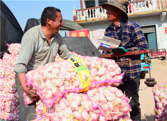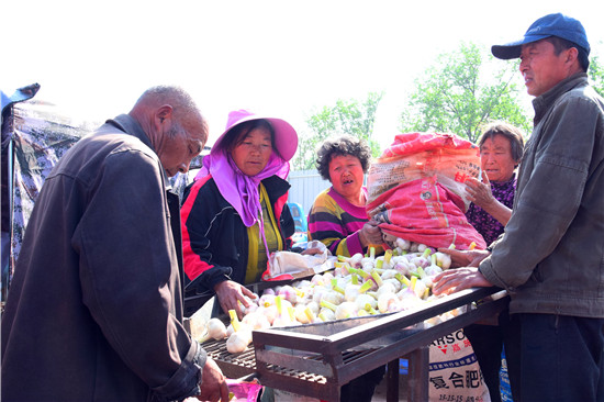 4月26日下午,記者在淮陽縣王店鄉(xiāng)107國(guó)道沿線看到,各個(gè)大蒜的收購(gòu)點(diǎn)車來車往,蒜農(nóng)們拉著新蒜賣給小販們。盡管今年春季雨水較少,天旱土地墑情較差,但是上萬畝大蒜,在蒜農(nóng)們施肥澆水管理下,長(zhǎng)勢(shì)不錯(cuò),每畝產(chǎn)量在3000斤到4000斤之間,迎來疫情下的大蒜豐收。