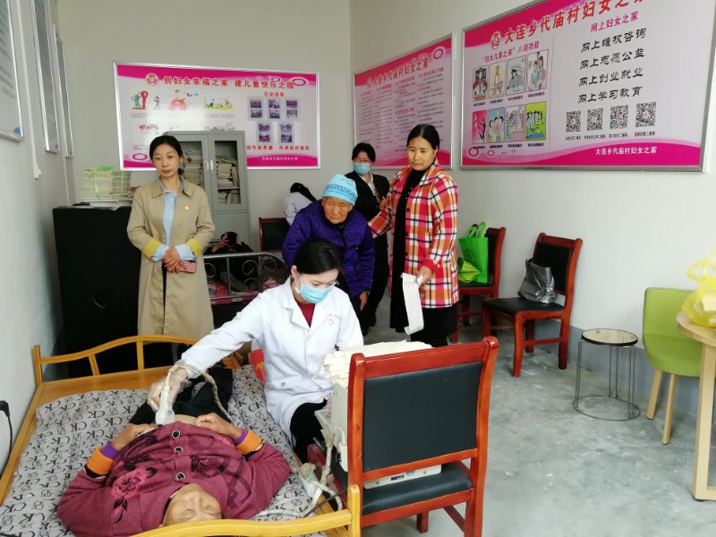 在代廟村黨員活動室,區(qū)婦聯(lián)工作隊與高齡母親們歡聚一堂,婦聯(lián)主席張健代表駐村工作隊向高齡母親致以節(jié)日的問候和美好的祝福,她說,一個家庭的幸福離不開母親的辛苦操勞,特別是這些高齡母親,經(jīng)歷了艱苦的歲月,為子女和家庭披星戴月、受盡磨難,因積勞成疾造成晚年的行動不便。區(qū)婦聯(lián)特意邀請大連鄉(xiāng)衛(wèi)生院的醫(yī)務(wù)人員來村里的婦女之家為高齡母親進行測血糖、量血壓、做B超、做心電圖、號脈問診,用精湛的醫(yī)術(shù)為大家送上健康的關(guān)懷,確保讓母親們度過一個愉快的節(jié)日。
