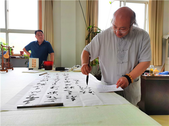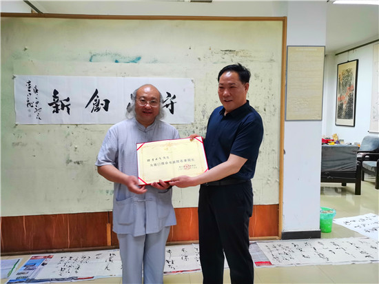 近日,當代指書大家李云飛受邀到周口報業(yè)集團書畫院進行書法交流。交流現(xiàn)場,李云飛揮毫潑墨,創(chuàng)作了多幅書法作品?;顒咏Y(jié)束后,周口報業(yè)集團王社長為李云飛頒發(fā)了聘書,聘請李云飛為周口報業(yè)集團書畫院名譽院長。