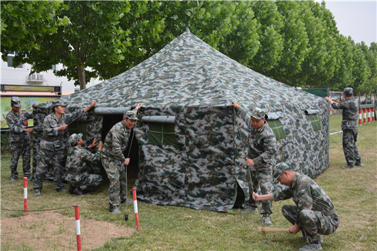 在這些民兵當中,擔負醫(yī)療救護的綜合勤務排更是不簡單。他們是來自周口長城醫(yī)院的醫(yī)護人員,在今年的抗疫戰(zhàn)中,他們充分發(fā)揮基層黨員民兵作用,無論白天黑夜,冒著雨雪嚴寒,在抗疫一線的卡點上都留下了他們迷彩身影。趙軍濤是來該醫(yī)院的醫(yī)護人員,同時也是一名退伍老兵,他說,新時代的強軍戰(zhàn)歌已經(jīng)奏響,要以此次集訓為契機,不斷強化練兵備戰(zhàn)的緊迫意識、危機意識,以飽滿的政治熱情投入到緊張的訓練中,用優(yōu)異成績?yōu)榇▍R區(qū)的后備力量建設(shè)增光添彩。