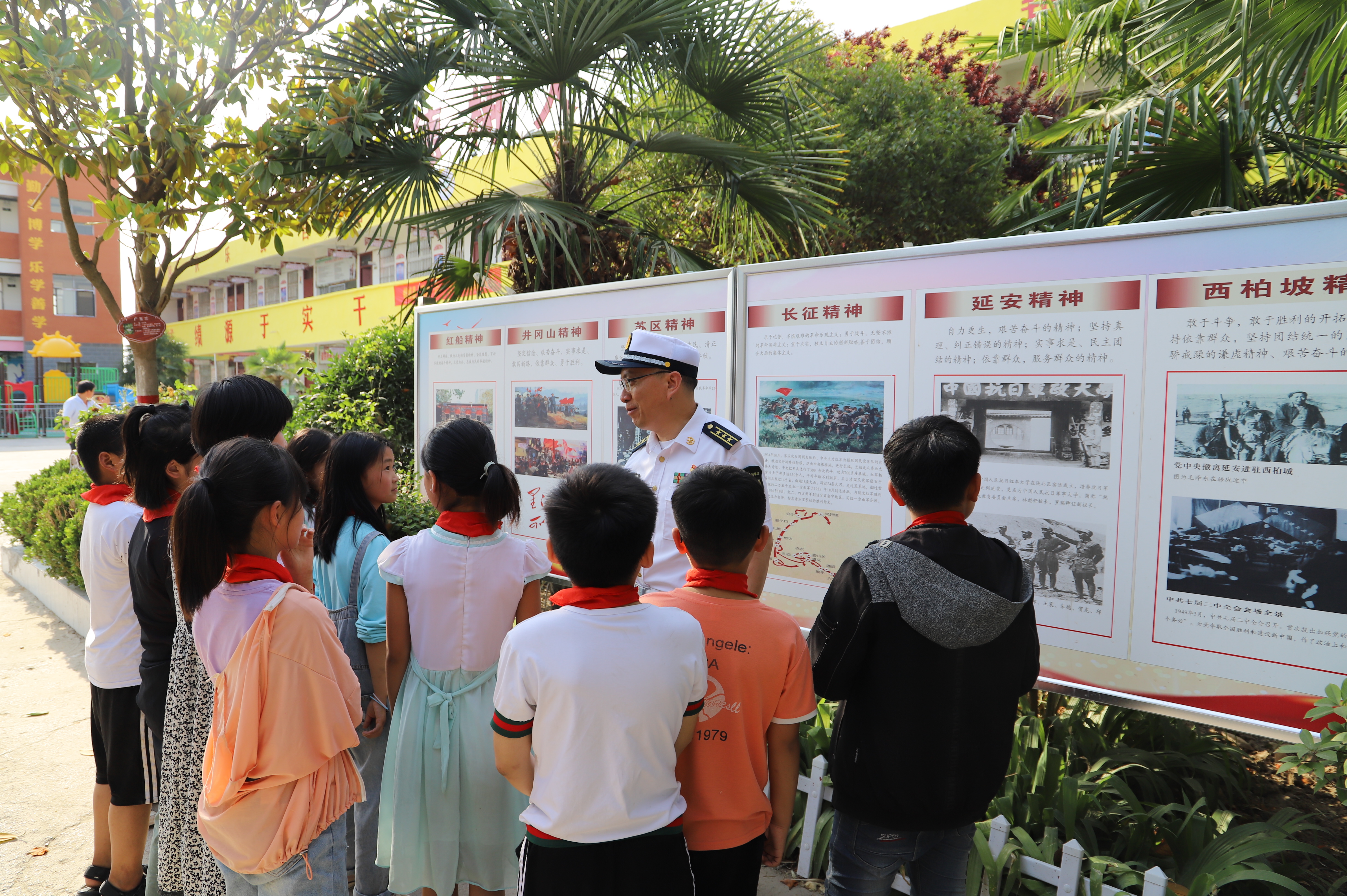 少年強(qiáng)則國強(qiáng)。眼下正是脫貧攻堅(jiān)決戰(zhàn)決勝的關(guān)鍵時(shí)刻,鄲城縣人民武裝部為了強(qiáng)化幫扶村脫貧致富的內(nèi)生動力,全面斬?cái)唷案F根”、栽下“富苗”,該部斥資數(shù)十萬元加強(qiáng)對東風(fēng)鄉(xiāng)大趙小學(xué)的幫扶力度,硬化、綠化、美化、亮化加紅色文化。該縣人武部部長董連江、政委金仁旺經(jīng)常到學(xué)校講革命精神,讓少先隊(duì)員了解革命歷史、感受革命傳統(tǒng),增強(qiáng)砥礪前行的理想信念,不忘初心跟黨走,一顆紅心永向黨,將革命精神傳承下去并發(fā)揚(yáng)光大,讓紅色文化成果助力“中國夢”的實(shí)現(xiàn)。圖為鄲城縣人民武裝部政委金仁旺向少先隊(duì)員講述革命精神。