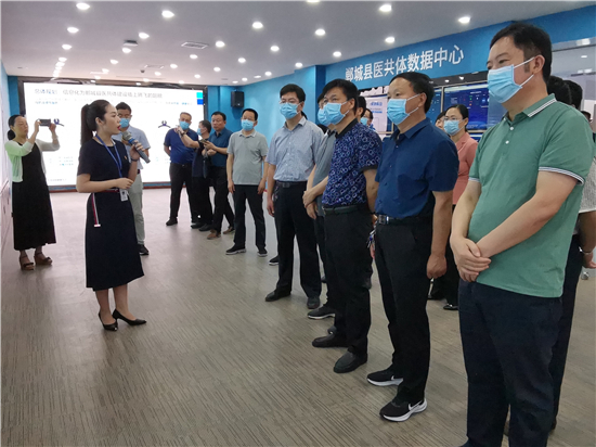 當日上午9時,5個縣市的負責同志來到鄲城之后現(xiàn)場組成參觀團,進入鄲城縣政府投資3500萬元興建的全民健康信息化服務(wù)中心,并參觀了第二醫(yī)療健康服務(wù)集團(鄲城中醫(yī)院)的醫(yī)共體運營管理中心、醫(yī)保監(jiān)管中心和財務(wù)監(jiān)管中心“三大運營管理中心”。