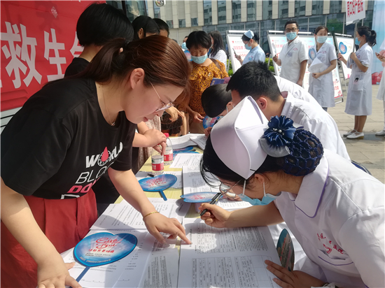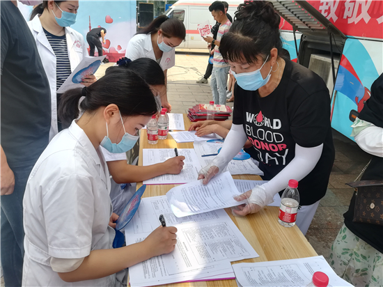 我市今天舉行了6.14世界獻(xiàn)血者日暨無(wú)償獻(xiàn)血宣傳月活動(dòng)啟動(dòng)儀式。在活動(dòng)現(xiàn)場(chǎng),廣大市民挽袖捐血,以熱血傳遞愛心,讓世界更健康。