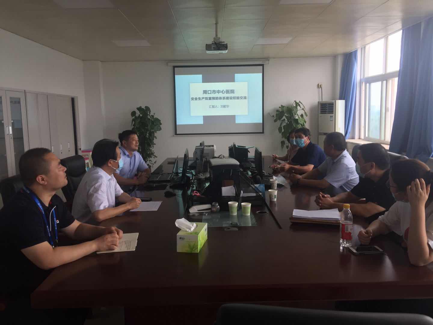 6月15日下午,扶溝縣人民醫(yī)院一行6人來(lái)到周口市中心醫(yī)院對(duì)安全生產(chǎn)雙重預(yù)防體系建設(shè)工作進(jìn)行參觀交流,市中心醫(yī)院副院長(zhǎng)呂燕平、保衛(wèi)科科長(zhǎng)劉獻(xiàn)華、醫(yī)聯(lián)部主任張小虎陪同。
