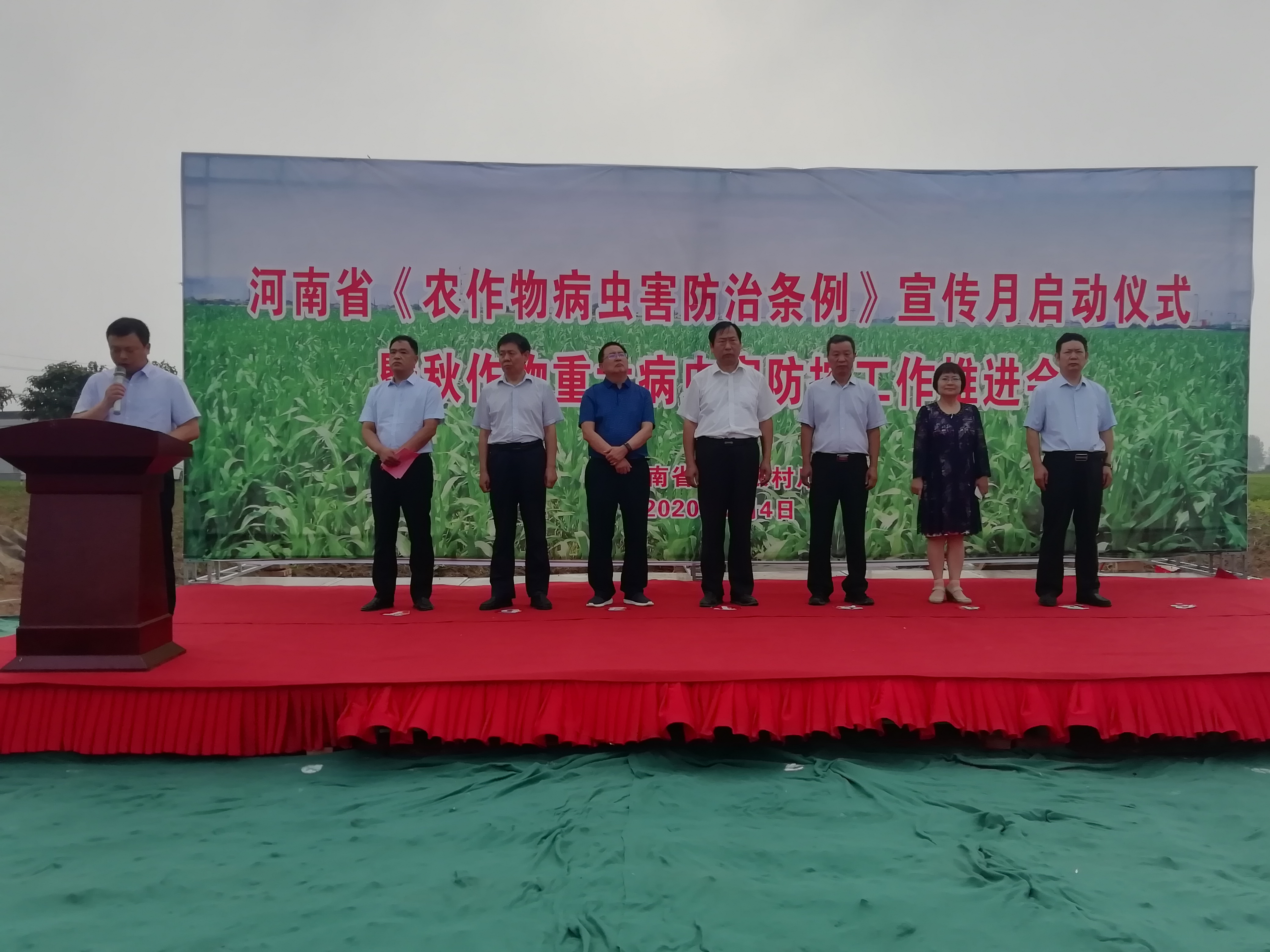 會前,我省《農(nóng)作物病蟲害防治條例》宣傳月啟動儀式在淮陽大連鄉(xiāng)龔橋村舉行。省植保植檢站工作人員向現(xiàn)場群眾宣講了秋作物病蟲害防治技術,發(fā)放了《農(nóng)作物病蟲害防治條例》、《草地貪夜蛾防治掛冊》等資料,與會人員觀摩了淮陽統(tǒng)防統(tǒng)治玉米病蟲害情況。
