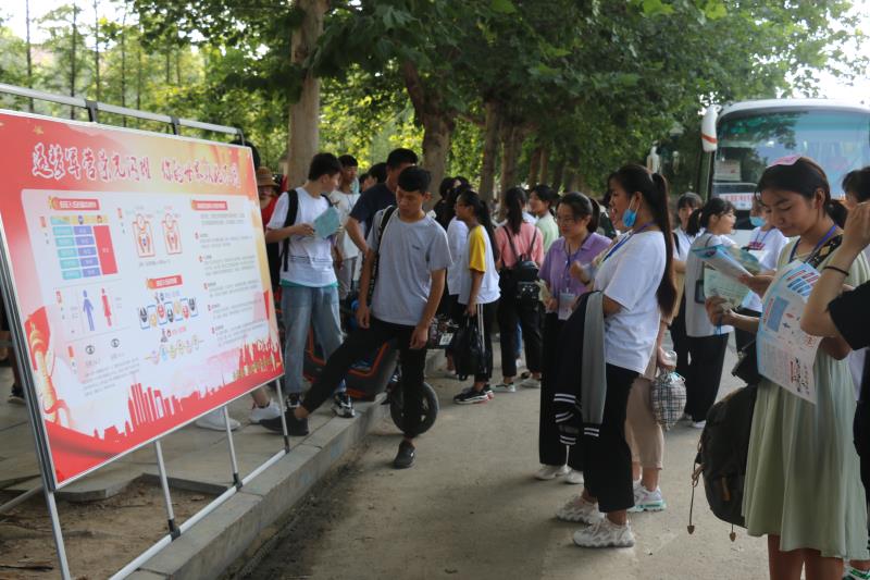 在該縣各標準化高考考點征兵宣傳現(xiàn)場,人頭攢動、熱鬧非凡。“好男兒,來當兵”大紅條幅和“把忠心獻給祖國,把青春獻給軍營”“參軍報國盡義務,熱血青年競風采”的大型宣傳牌格外引人注目,內(nèi)容豐富的征兵宣傳展板一字排開,《征兵宣傳手冊》《大學新生應征入伍宣傳單》《征兵政策宣傳解讀手冊》等征兵宣傳資料擺放在咨詢臺上一目了然,吸引了眾多的考生和家長駐足觀看,圍著咨詢臺詢問有關征兵事宜。