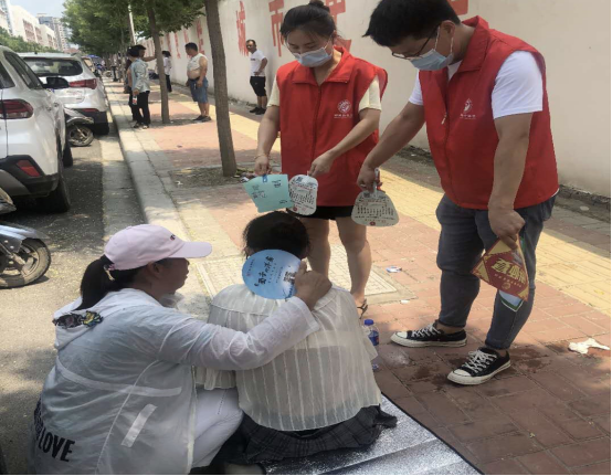 在各考點志愿活動現(xiàn)場,志愿者們早早搭起遮陽帳篷,擺好桌子、礦泉水,防暑應(yīng)急藥品等用品,為考生和家長提供休息場所,在炎熱的夏日里為他們送上一份清涼和安心。同時,他們還維持考點周邊市容環(huán)境的整潔有序,對于大聲喧嘩等不文明行為及時勸阻;協(xié)助交警疏導(dǎo)交通,減少道路噪音對考試的影響,確保道路交通安全有序。期間,陸續(xù)有家長及考生前來咨詢就診,志愿者們熱情接待,為其測量血壓,提供礦泉水、解暑藥品等,得到家長及考生的一致好評。