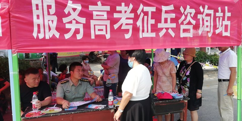 7月8日,太康縣大許寨鎮(zhèn)組織鎮(zhèn)武裝部人員到高考點(diǎn)設(shè)立服務(wù)站,向考生及家長發(fā)放礦泉水、風(fēng)油精及大學(xué)生入伍宣傳冊;服務(wù)考生決戰(zhàn)高考,耐心宣傳入伍政策,少年尚武志,攜筆亦從戎;鼓勵(lì)優(yōu)秀畢業(yè)生投身國防、報(bào)效祖國。