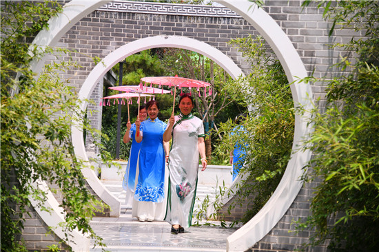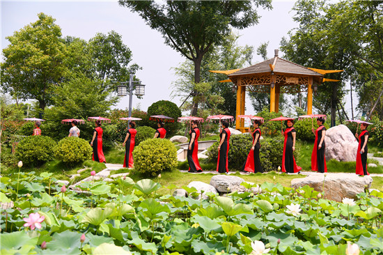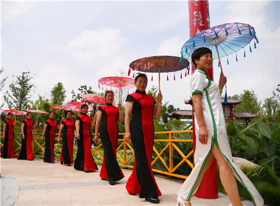 周口森林公園經(jīng)過近年的建設(shè)已經(jīng)成為市區(qū)休閑的一處好去處,風(fēng)景優(yōu)美,園林幽深,目前,盡管森林公園附近道路施工,進出還不方便,但是仍吸引著很多居民前去休閑游玩,愛美的大媽們更是在這里秀一把,7月16日上午,來自市區(qū)模特隊的大媽們,穿著靚麗的旗袍,在荷葉飄香、假山園林秀林深處,開心地進行一場模特秀。