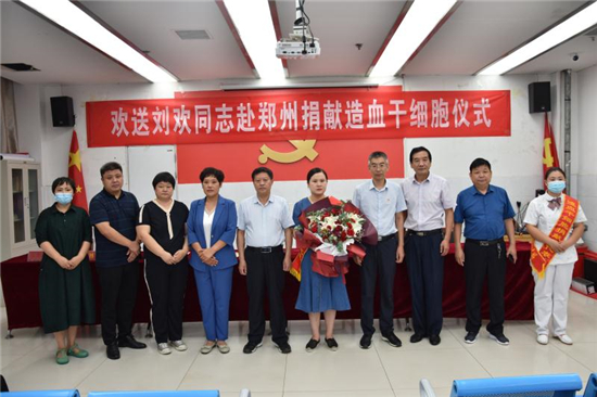 “作為一名醫(yī)務(wù)人員,能為患者帶來生的希望,無論如何我都不會(huì)拒絕。希望捐獻(xiàn)后那位患者能早日康復(fù),投入新生活……” 7月22日上午,在西華縣中醫(yī)院會(huì)議室舉行的劉歡同志赴鄭州捐獻(xiàn)造血干細(xì)胞歡送儀式上,這位來自該院骨科護(hù)士長(zhǎng)的一番話贏得現(xiàn)場(chǎng)陣陣掌聲。市紅十字會(huì)常務(wù)副會(huì)長(zhǎng)毛立營(yíng),市紅十字會(huì)秘書長(zhǎng)高春,西華縣委副書記郭峰,西華縣人民政府副縣長(zhǎng)、紅十字會(huì)會(huì)長(zhǎng)張翠霞,西華縣衛(wèi)健委副主任胡濤,西華縣中醫(yī)院院長(zhǎng)高彥博等出席歡送儀式。