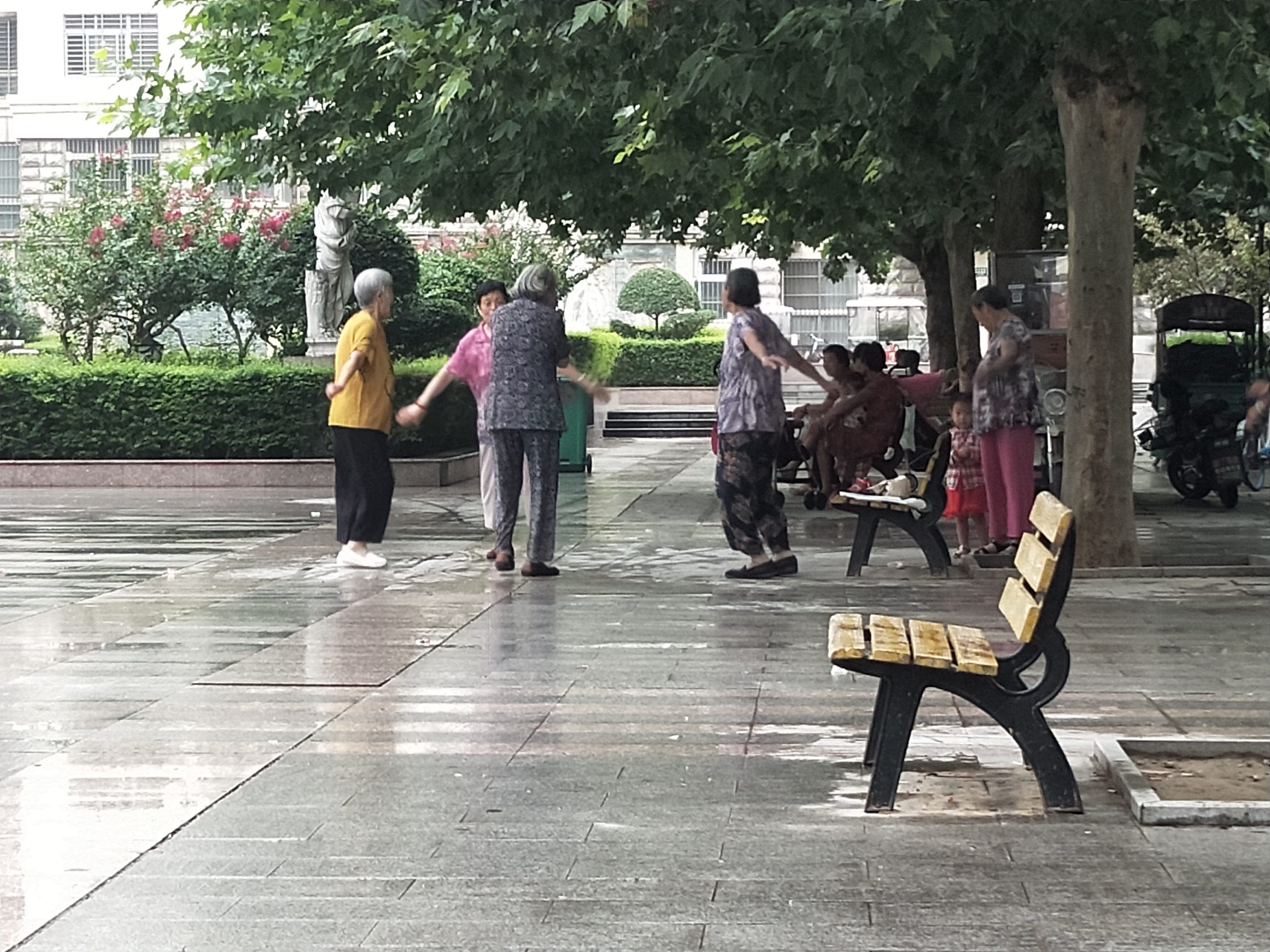 上午8點,天空隱約下著小雨,記者在北門小區(qū)廣場的噴泉旁邊轉(zhuǎn)轉(zhuǎn)。幾位70多歲的老人坐在排椅上,音響里傳來很大的戲曲聲回蕩在廣場上?!白疃鄷r有十幾個人吧,每天早上8點左右開始做操,音響聲音調(diào)得比較大,我家恰好就在這噴泉廣場西邊,在家里聽得很清楚?!崩钆恐v,由于工作原因,她經(jīng)常上夜班,想睡個好覺也不能如愿,她也向物業(yè)反映過,可是一直沒有什么效果。