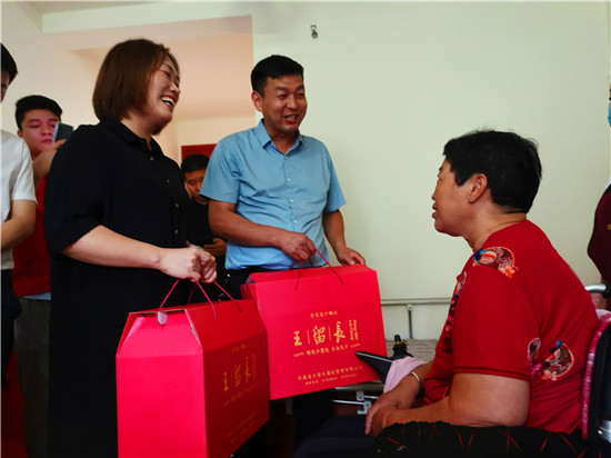 走進位于太昊路上的周口市老年護理院,院內(nèi)整潔有序、花蕊吐香鳥鳴聲聲,小徑通幽處的涼亭內(nèi)三五老人打牌、聊天,一副愜意安詳?shù)纳顖鼍?。在侯國領母親王玉勤居住的房間內(nèi),李揚、孫光濤等人坐在床邊與她聊天談心,看到這么多人來慰問她,王玉勤眼中流下了感動的眼淚,她對慰問人員表示感謝,說自己來護理院近一年來,吃住條件都不錯,護理院照顧的無微不至,身體一天天恢復,閑暇時還能不依賴輪椅自己走上一段路。她激動地說:“感謝黨和政府的親切關懷,我最大的愿望是希望倆兒子永遠聽黨的話,在部隊安心服役、再立新功,用優(yōu)異的成績回報黨和政府對我們?nèi)业年P愛?!?/p>