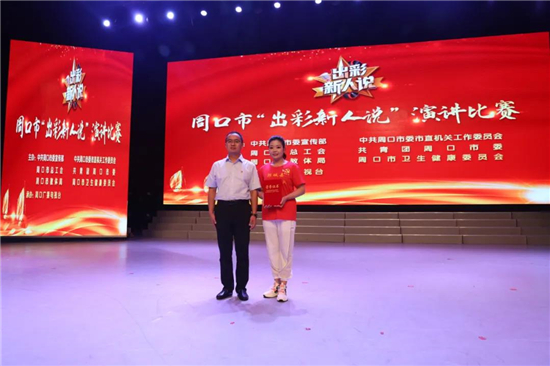 8月4日,由中共周口市委宣傳部、中共周口市委市直機(jī)關(guān)工作委員會(huì)、周口市總工會(huì)、共青團(tuán)周口市委、周口市教體局、周口市衛(wèi)生健康委員會(huì)主辦,周口市廣播電視臺(tái)承辦的周口市“出彩新人說”演講比賽落下帷幕,來自各系統(tǒng)的24名選手展開了激烈角逐。鄲城縣第二醫(yī)療健康服務(wù)集團(tuán)縣中醫(yī)院胡奔奔獲得了一等獎(jiǎng)的好成績。