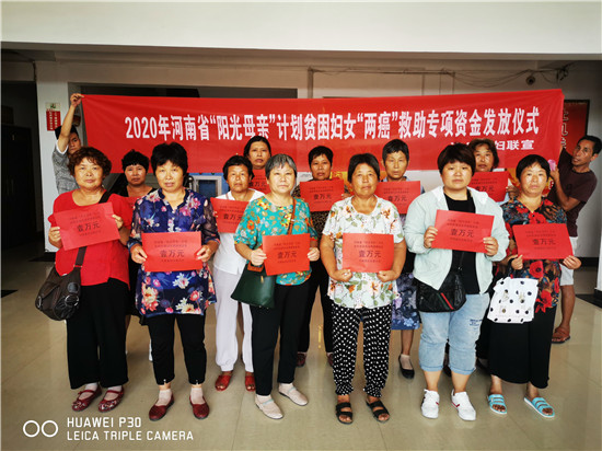 據(jù)悉,此次發(fā)放的公益金來自于河南省陽光母親貧困婦女兩癌救助金。其救助對象是經(jīng)過有檢查資質(zhì)的醫(yī)療機構確診、患有宮頸癌ⅡB以上或浸潤型乳腺癌的農(nóng)村貧困婦女,救助標準為每人一次性救助1萬元。