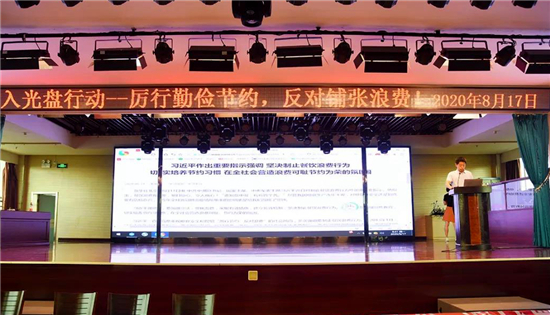 與會(huì)人員首先學(xué)習(xí)了習(xí)近平總書記關(guān)于“厲行勤儉節(jié)約、反對(duì)鋪張浪費(fèi)”的重要指示精神。習(xí)近平總書記指出,餐飲浪費(fèi)現(xiàn)象,觸目驚心、令人痛心!“誰知盤中餐,粒粒皆辛苦?!北M管我國糧食生產(chǎn)連年豐收,對(duì)糧食安全還是始終要有危機(jī)意識(shí),今年全球新冠肺炎疫情所帶來的影響更是給我們敲響了警鐘。習(xí)近平強(qiáng)調(diào),要加強(qiáng)立法,強(qiáng)化監(jiān)管,采取有效措施,建立長(zhǎng)效機(jī)制,堅(jiān)決制止餐飲浪費(fèi)行為。要進(jìn)一步加強(qiáng)宣傳教育,切實(shí)培養(yǎng)節(jié)約習(xí)慣,在全社會(huì)營(yíng)造浪費(fèi)可恥、節(jié)約為榮的氛圍。