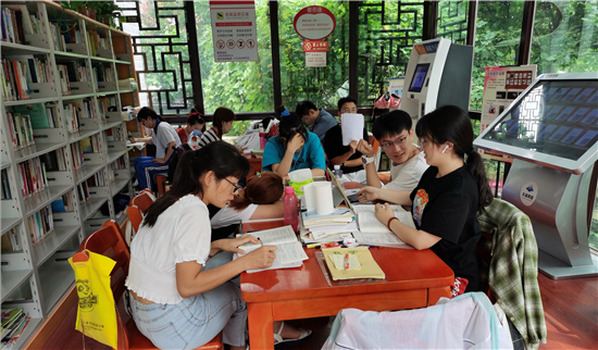 自進入暑假以來,市圖書館接待人數(shù)居高不下,其中學生居多。不少學生來此學習、寫暑假作業(yè),他們感到圖書館環(huán)境靜謐,有學習氛圍。在市區(qū)的各個智慧圖書館內(nèi)有時還會出現(xiàn)了“一座難求”的現(xiàn)象。但大家都自覺遵守圖書館的紀律,沒有一絲噪音。