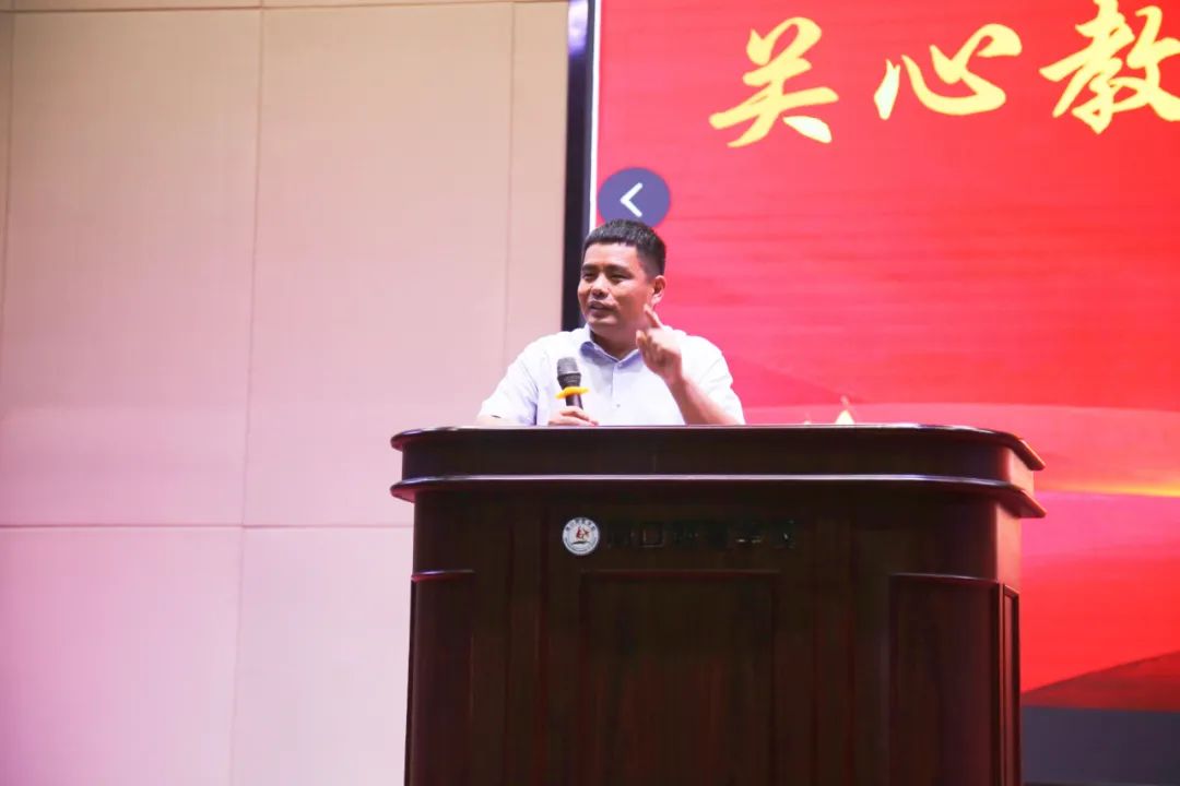 新星學(xué)校董事長劉永文作回憶了自己辦學(xué)的艱辛歷程和初心,講了自己作為一名老師至今對(duì)教師崗位的眷戀和熱愛;表達(dá)了對(duì)教師這個(gè)群體的深情,表達(dá)了他對(duì)教師群體要盡綿薄之力的心愿。他的講話真誠坦率,侃侃而談,贏得了一陣陣掌聲。