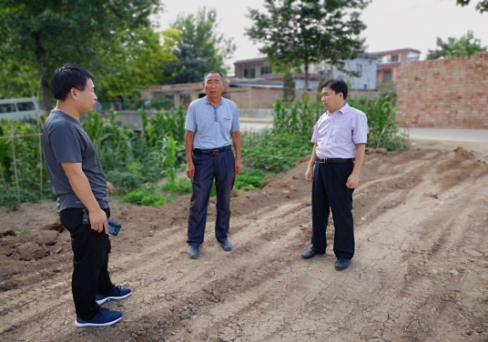 (圖為李樓鄉(xiāng)黨委副書記李文明和駐村第一書記、土趙村干部在村室調(diào)研)