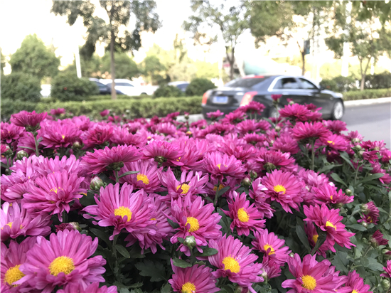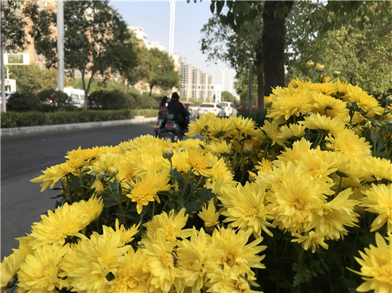 10月23日,霜降時(shí)節(jié),百花早已在寒風(fēng)中凋零,而菊花卻傲骨迎風(fēng)怒放。在周口大道與慶豐東路交叉口,朵朵菊花在陽光的照耀下,顯得清淡高雅、卓爾不凡,醉了清風(fēng)、迷了行人。②8