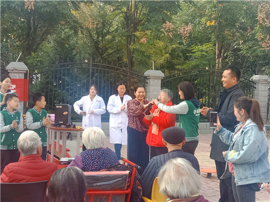 最后,整個(gè)活動(dòng)在老人和學(xué)生合唱《沒有共產(chǎn)黨就沒有新中國》的旋律中結(jié)束。
