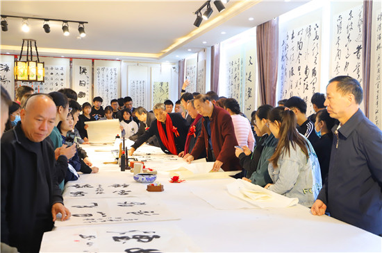 10月15日,重陽節(jié)。中國(guó)書法之鄉(xiāng)鄲城縣書協(xié)主席巴云山和資深書法家張樹銀、杜長(zhǎng)青、崔傳明等人一道,在該縣八斗文化藝術(shù)中心舉行揮毫慶重陽的義寫活動(dòng)。許多老藝術(shù)家和年輕學(xué)生歡聚一堂,過了一個(gè)別樣的重陽節(jié)。