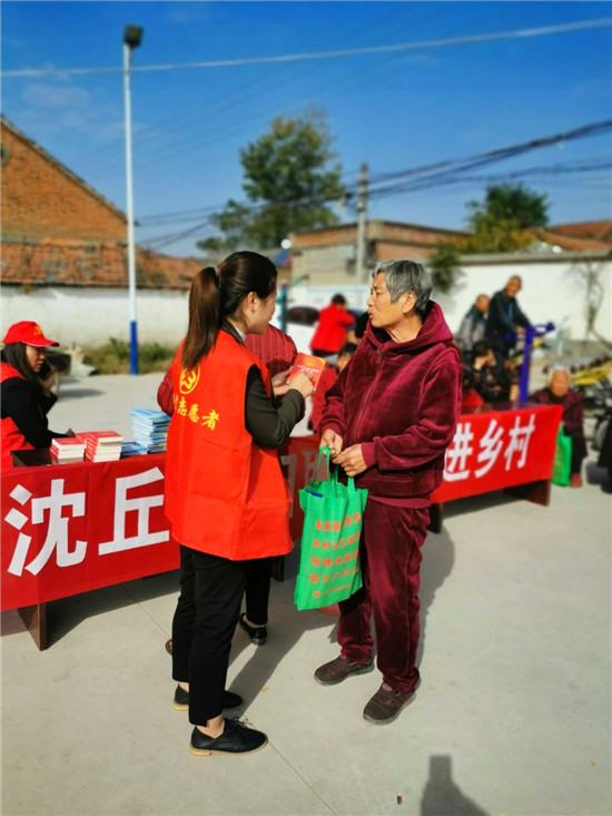 為助力鄉(xiāng)村振興,不斷提高廣大農(nóng)村留守婦女的法律意識(shí),切實(shí)解決她們生產(chǎn)生活中存在的法律難題,10月25日上午,沈丘縣婦聯(lián)借“快樂星期天公益行”主題活動(dòng)之機(jī),走進(jìn)北城辦事處蘇樓村居委,對《民法典》《婦女權(quán)益保障法》《反家庭暴力法》《未成年人保護(hù)法》等有關(guān)法律法規(guī)進(jìn)行宣傳,把法律服務(wù)送到群眾家門口。