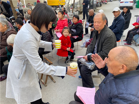 活動現(xiàn)場熱鬧非凡,小橋街道辦黨工委書記侯明亮、主任王靜、人大工委主任張萬勝等為在場群眾發(fā)放了“敬老倡議書”,與大家共同品鑒菊花茶。同時,侯明亮為大家講述了重陽節(jié)的由來、傳說、習(xí)俗等傳統(tǒng)知識。大家為在場老人送上了精心準(zhǔn)備的帽子、棉拖鞋、棉坐墊等小禮品,獻(xiàn)上了佳節(jié)祝福,讓老人們感受黨和政府的溫暖及濃濃的節(jié)日氣氛,讓德孝之風(fēng)成為普遍共識和自覺行動。