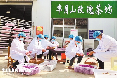 銀杏樹溝村村民在村扶貧車間分揀玫瑰花
