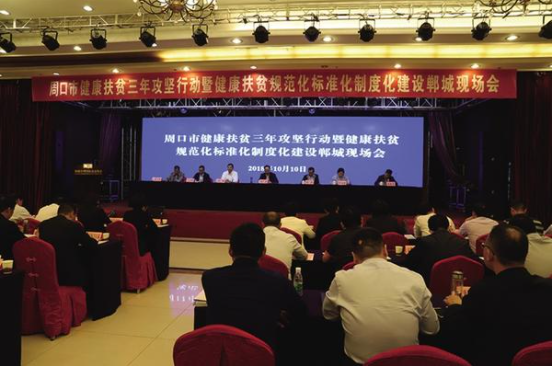 2018年10月10日,周口市健康扶貧三年攻堅暨健康扶貧規(guī)范化標準化制度化建設現(xiàn)場會在鄲城縣召開。
