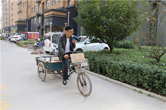 行駛30多分鐘后,劉啟昌來到太康縣城鑫港灣小區(qū),打開喇叭開關(guān),吆喝了起來:“誰家賣書,誰家有多余的書籍賣……”聽到吆喝聲,居民崔海英從家里抱出來一摞書?!叭亲魑臅?,學(xué)生看了對寫作有好處?!贝藓S褧f給劉啟昌說。