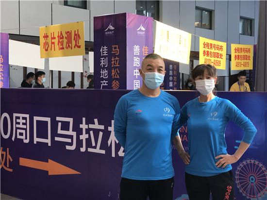 活動現(xiàn)場前來領(lǐng)取賽前裝備的人源源不斷,有的是朋友結(jié)伴而來,有的趁工作間隙而來,還有的帶著孩子前來,十分熱鬧。王勝利先生今年是第四次參加周口馬拉松賽了,他說:“2017年我跑了5小時30分,2018年是4小時28分,2019年跑了4小時17分,通過這幾年堅持不懈地鍛煉,今年我想爭取跑到4個小時以內(nèi),不跟別人比,主要是不斷地自我超越!”今年的周口馬拉松賽還吸引了許多“都市麗人”參加,劉女士就是其中一員,“我今年36歲了,平時就非常喜愛健身、長跑,今年是我第一次報名參加馬拉松賽,希望能夠挑戰(zhàn)自己?!彼嬖V記者。
