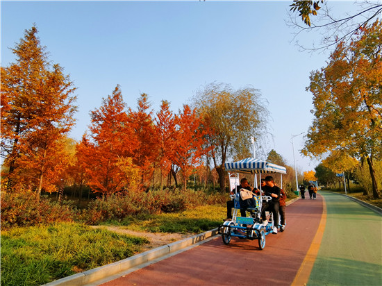 金黃色的杏葉、艷紅的楓葉、各色的鮮花……現(xiàn)在,市民們不用外出旅行,在家門口就可欣賞到這些美景。大家在周末時(shí)攜家在公園游玩、拍照很是愜意。