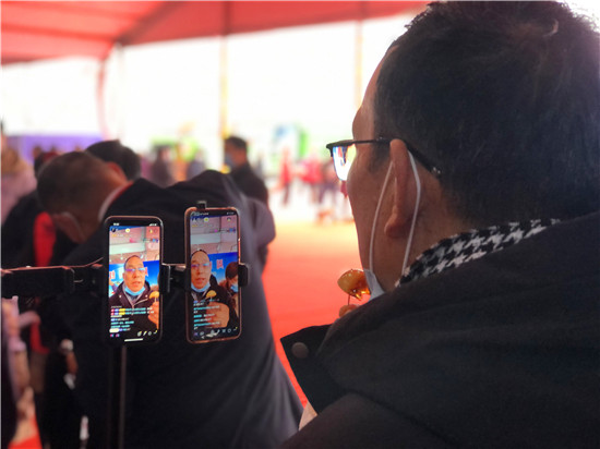 28日早上7時(shí)許,周口網(wǎng)紅俱樂部的網(wǎng)紅們和工作人員就開始為今天的直播做準(zhǔn)備,早早把直播設(shè)備搬到現(xiàn)場(chǎng),進(jìn)行調(diào)試。10時(shí)左右,周商產(chǎn)品展示展覽活動(dòng)現(xiàn)場(chǎng)人頭攢動(dòng),熱鬧非凡,來自周口本地的9位網(wǎng)紅們陸續(xù)架好手機(jī)直播設(shè)備,打開補(bǔ)光燈,開始直播?,F(xiàn)場(chǎng)的9位網(wǎng)紅各有特色,有打扮時(shí)髦的美女主播,有歌聲出眾的中年大叔,年齡最大的網(wǎng)紅是今年65歲的鹿邑大爺。網(wǎng)紅們一手拿著周口的蜂蜜、空心掛面、麻花、粉條、醬豆等土特產(chǎn),一邊對(duì)著手機(jī)屏幕里的粉絲熱情地展示和介紹起來,有的還直接進(jìn)行現(xiàn)場(chǎng)吃播,不時(shí)與網(wǎng)友進(jìn)行唱歌、聊天互動(dòng),吸引了不少行人前來觀看?!霸瓉碓诙兑羯峡催^網(wǎng)紅帶貨,但沒見過真人, 今天終于見到真實(shí)的網(wǎng)紅了!感覺很有意思!”前來觀展的市民劉女士說。