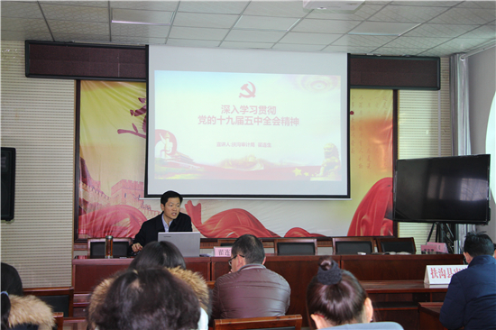 “黨的十九屆五中全會是在我國將進(jìn)入新發(fā)展階段、實(shí)現(xiàn)中華民族偉大復(fù)興正處于關(guān)鍵時期召開的一次具有全局性、歷史性意義的會議。”12月19日,扶溝縣審計(jì)局召開學(xué)習(xí)貫徹十九屆五中全會精神宣講大會,由局黨組書記翟連生作宣講報(bào)告,該局全體干部職工共40余人參加了宣講會。