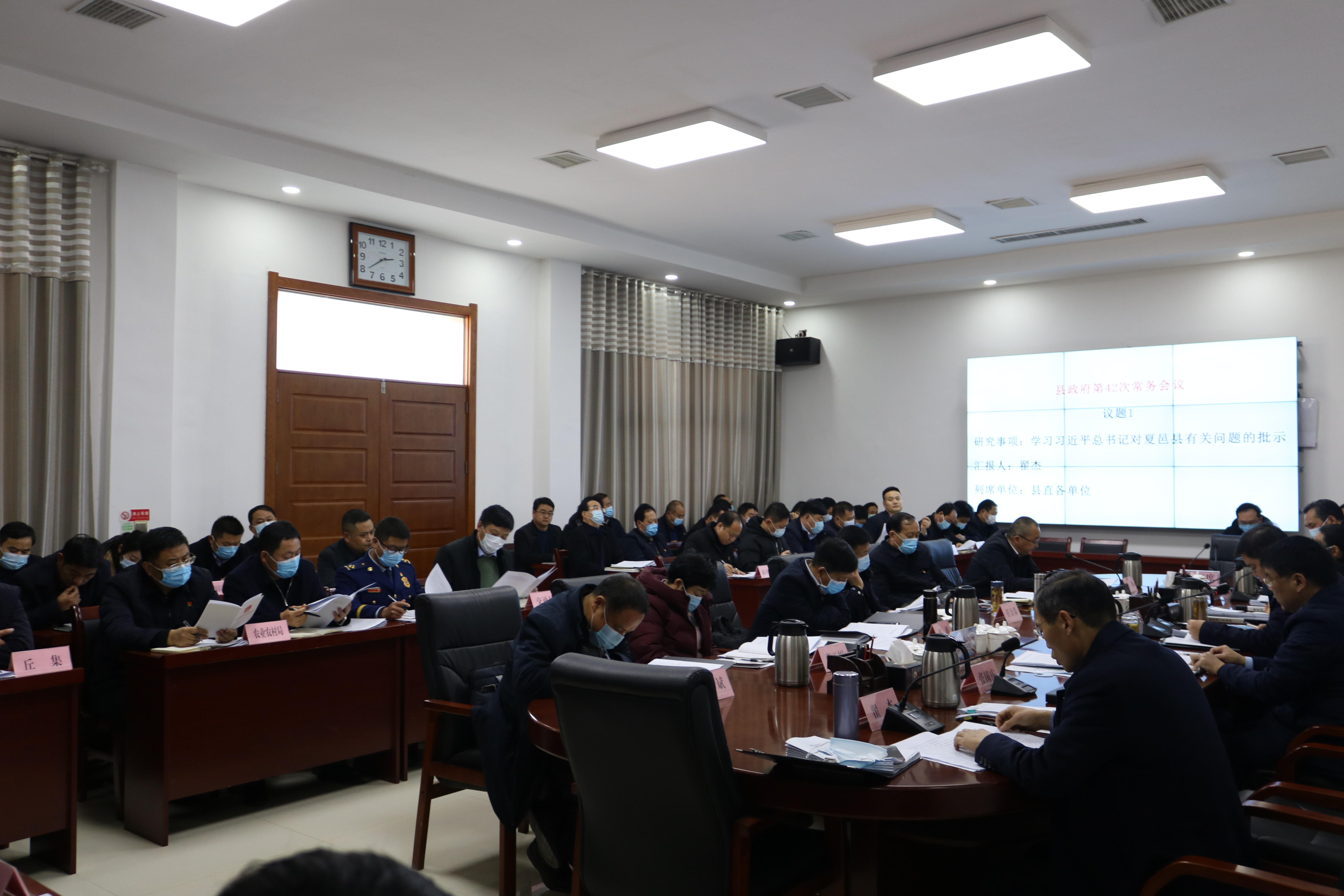 會議先后傳達(dá)學(xué)習(xí)了習(xí)近平總書記對夏邑縣有關(guān)問題的批示精神、中央經(jīng)濟(jì)工作會議精神;學(xué)習(xí)了關(guān)于我省黨政代表團(tuán)赴上海、江蘇、浙江學(xué)習(xí)考察情況的報(bào)告以及河南省消防安全責(zé)任制實(shí)施辦法;聽取了關(guān)于2020年民生實(shí)事完成情況的匯報(bào)、關(guān)于政府系統(tǒng)落實(shí)省委巡視整改工作情況的匯報(bào)、關(guān)于鹿邑縣2020年環(huán)保攻堅(jiān)工作情況匯報(bào)、關(guān)于鹿邑縣2020年安全生產(chǎn)工作情況匯報(bào)、關(guān)于鹿邑縣秋冬季新冠肺炎疫情防控工作匯報(bào)、關(guān)于成立鹿邑縣林業(yè)生態(tài)發(fā)展有限公司的匯報(bào)、關(guān)于引江濟(jì)淮工程棄土處置問題的意見匯報(bào)。
