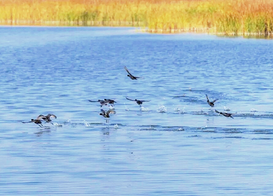 近日,我市天朗氣清、惠風(fēng)和暢,引黃調(diào)蓄工程天藍(lán)水碧、水天一色的風(fēng)景令人心曠神怡,其良好的生態(tài)環(huán)境吸引了很多水鳥前來?xiàng)?,如銀鏡一般的湖面上綠頭鴨、赤麻鴨、白鷺、灰鷺等禽鳥成群結(jié)隊(duì),姿態(tài)各異。水鳥、湖水與藍(lán)天交相輝映,風(fēng)光旖旎,盡顯詩意。