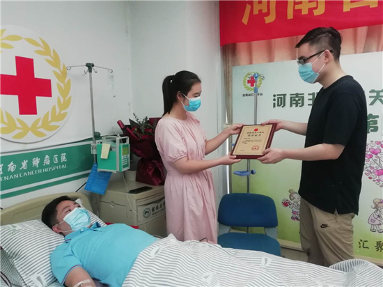 “王俊男先生,感謝您成為一名光榮的造血干細(xì)胞捐獻(xiàn)者,您的偉大善舉將使血液病患者獲得新生。”在河南紅十字會為王俊男頒發(fā)的榮譽證書上,給予了他最崇高的敬意。