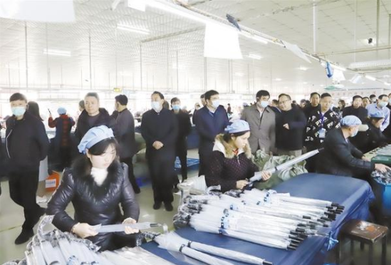 12月23日下午,在鄲城縣舉行的中國日用雜品工業(yè)協(xié)會制傘專業(yè)委員會五屆五次暨六屆一次會員代表大會中,來自全國制傘行業(yè)的精英們先后來到鄲城會客廳、傘業(yè)產(chǎn)業(yè)園、兄和家居、返鄉(xiāng)創(chuàng)業(yè)園、洺河森林樂園、鄲城一高、人民公園、體育場等地,實(shí)地感受鄲城高質(zhì)量發(fā)展成果和傘業(yè)發(fā)展?jié)摿?,共謀中國傘業(yè)的發(fā)展前景。 記者 徐松 攝