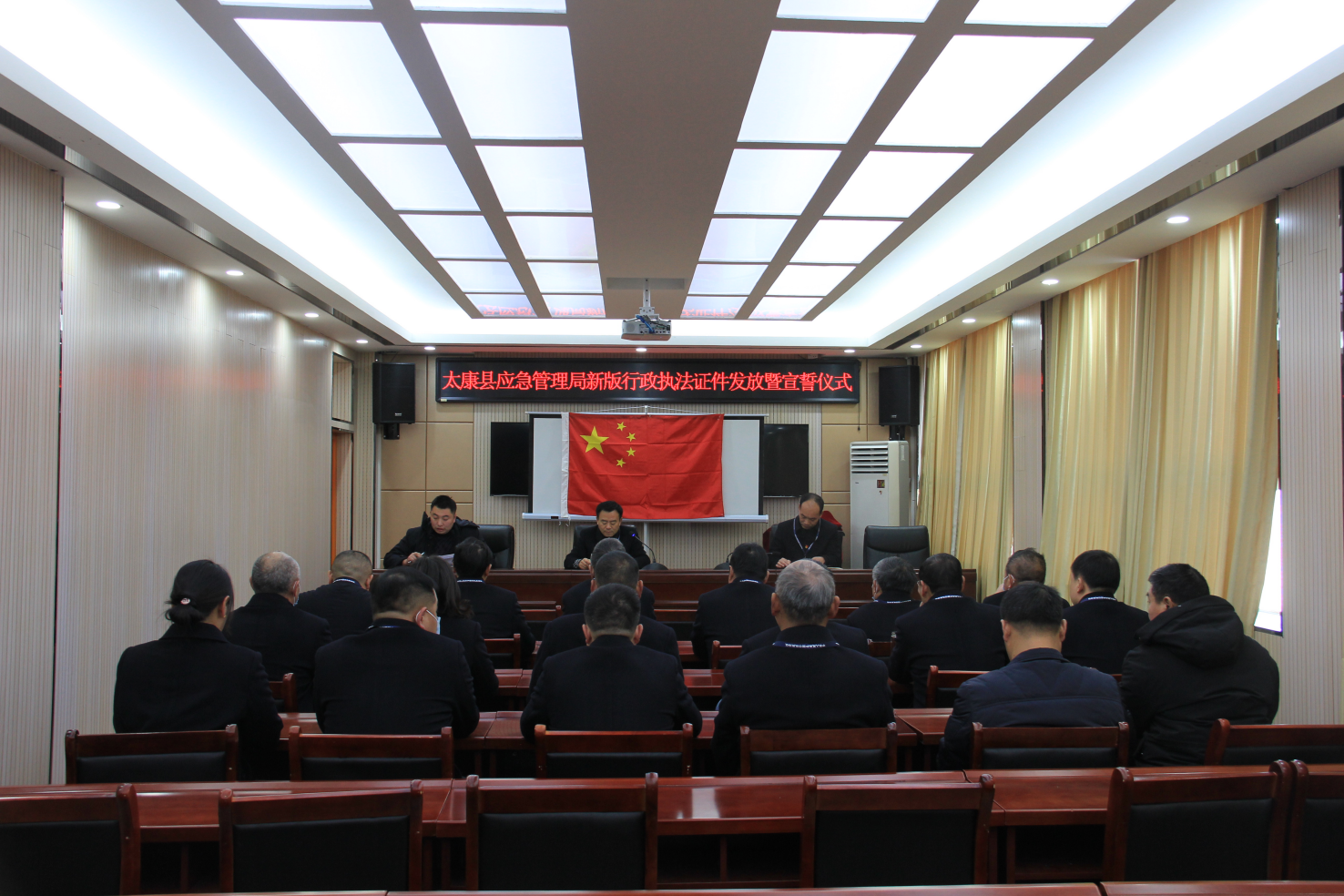 “我是一名行政執(zhí)法人員,我鄭重向祖國(guó)、向人民宣誓: 忠于國(guó)家,忠于人民,忠于憲法和法律;堅(jiān)持執(zhí)法為民, 堅(jiān)持依法行政,維護(hù)公平正義……”。12月31日上午,太康縣應(yīng)急管理局新版行政執(zhí)法證件發(fā)放暨宣誓儀式上,取得行政執(zhí)法證件的執(zhí)法人員面向國(guó)旗莊嚴(yán)宣誓。