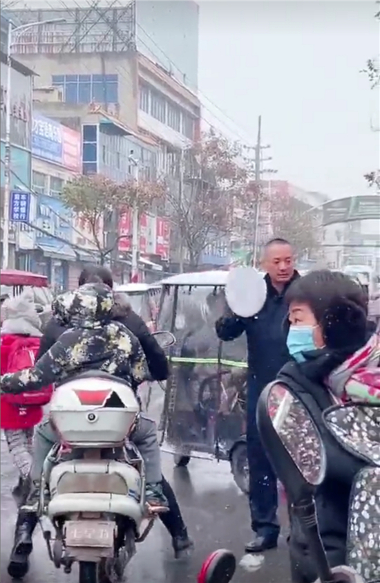 走在路上,雪花片子就往臉上撲,迎面的小風(fēng)像刀子一樣,即使你不愿意,也要跟你進(jìn)行親密接觸。到沈丘縣回民小學(xué)東邊的十字路口,各路送娃大軍從四面八方涌來(lái),那真是車來(lái)車往,熙熙攘攘。兩輪的三輪的四輪的,瞬間一起往學(xué)校門(mén)口涌去。原本送完娃多少都會(huì)堵一會(huì),今天竟然沒(méi)有堵車!后來(lái)才知道學(xué)校這邊有個(gè)警察很早就來(lái)現(xiàn)場(chǎng)指揮交通。