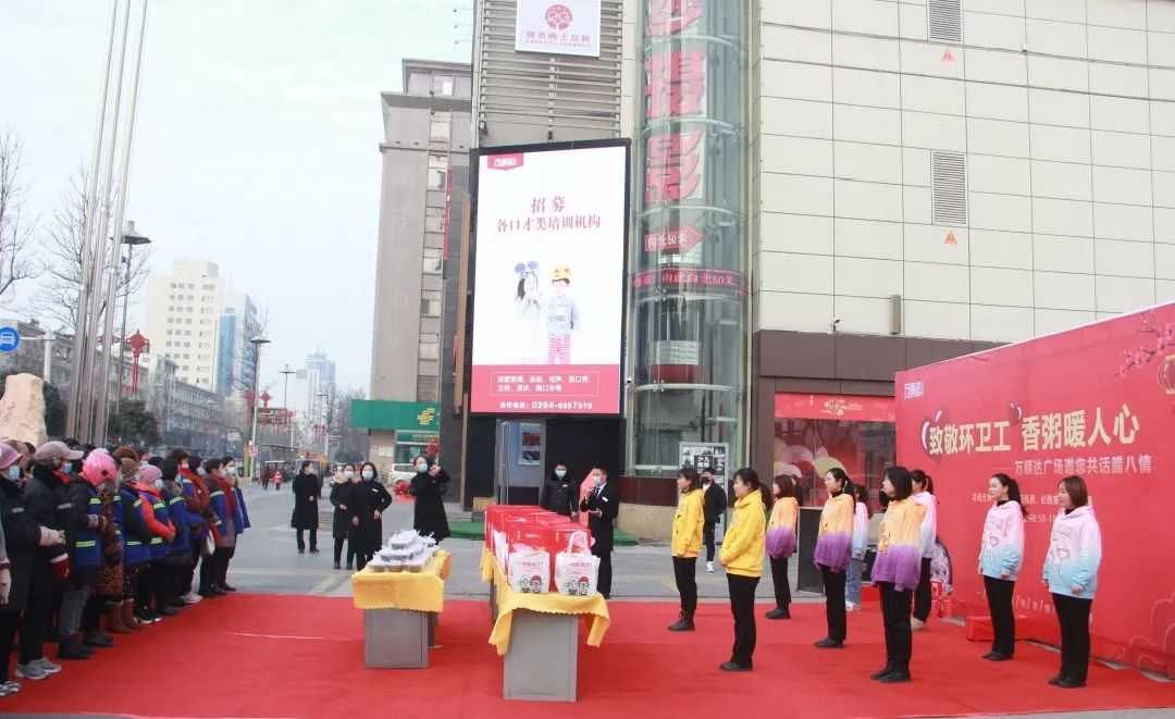 本次活動(dòng)的主題是“一碗臘八粥,溫暖一座城”。當(dāng)忙碌一陣后的環(huán)衛(wèi)工人來到萬順達(dá)廣場門前時(shí),萬順達(dá)廣場的工作人員一曲《好運(yùn)來》和《你笑起來真好看》,讓整日忙碌的做著重復(fù)而又枯燥工作的環(huán)衛(wèi)工人們臉上笑開了花。