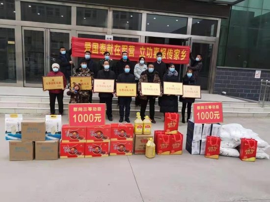 到立功軍人家庭,人武部和退役軍人事務(wù)局領(lǐng)導(dǎo)為立功軍人及家屬送上立功喜報(bào)、“功臣之家”匾額、慰問(wèn)金及米、面、油、牛奶、牛肉等慰問(wèn)品,并親切詢問(wèn)軍人家屬的生活狀況,感謝他們?yōu)椴筷?duì)培養(yǎng)了優(yōu)秀人才。對(duì)立功受獎(jiǎng)退伍軍人表示祝賀,希望他們退役后繼續(xù)發(fā)揚(yáng)軍人本色,再接再厲,在新的崗位上取得更大的成績(jī)。